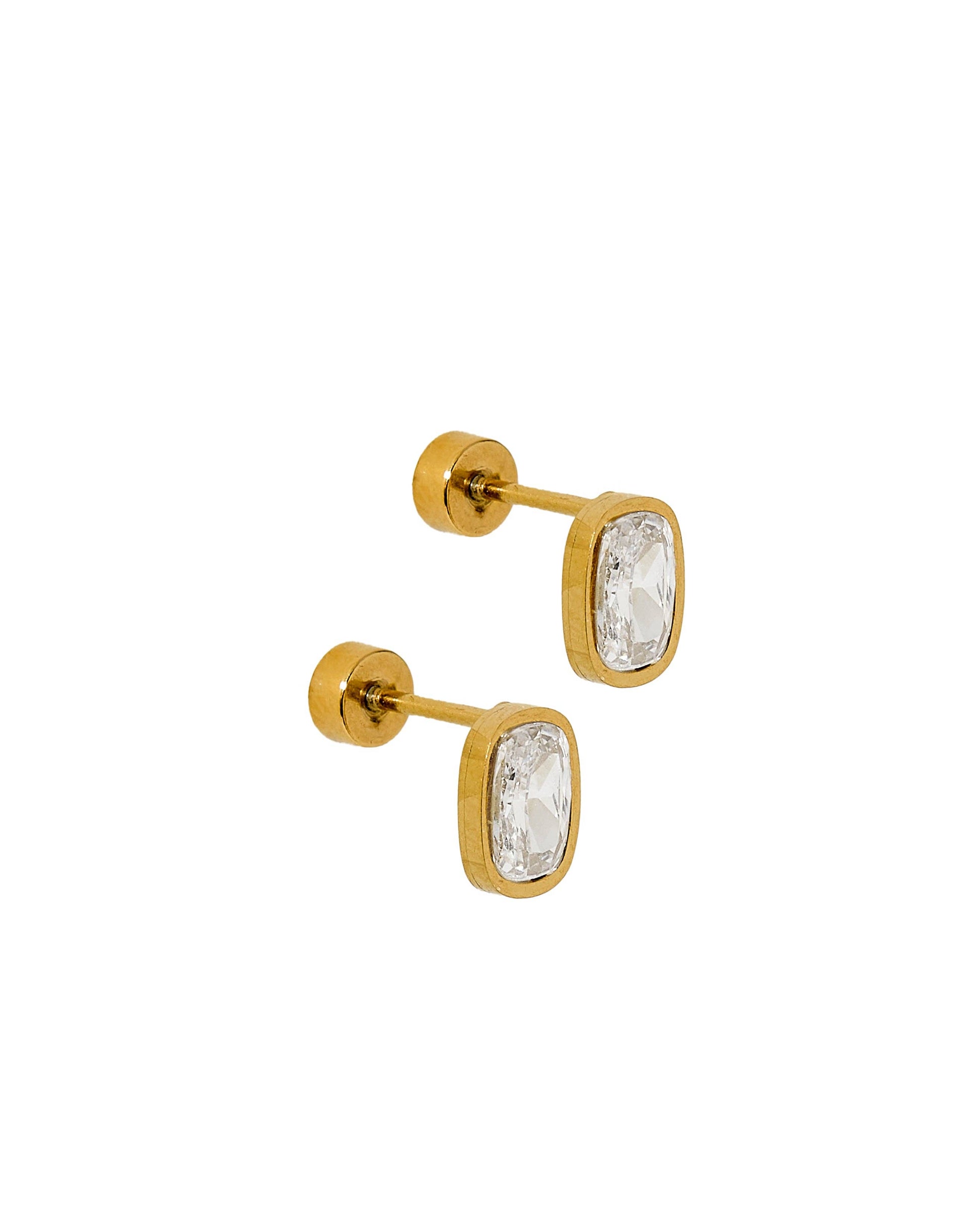 Minimal with just the right amount of sparkle, the Kay Clear Screw-Back Stud Earrings feature an elongated clear crystal set in a sleek gold bezel. Designed for everyday wear, these studs are finished with LINNY CO’s signature flat-back screw-on post for secure, poke-free comfort you can wear all day (and night).